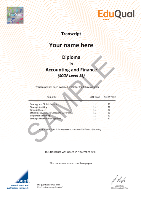 Diploma in Accounting and Finance (SCQF Level 11)