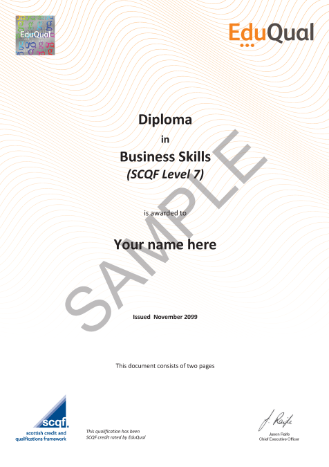 The Scottish Credit and Qualifications Framework (SCQF) is the national qualifications framework for Scotland, with international recognition. As an SCQF Credit Rating Body (CRB), EduQual has credit-rated this qualification for the SCQF. See the SCQF Register for the full list of EduQual’s SCQF credit-rated qualifications.