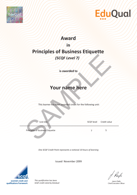 Award in Principles of Business Etiquette (SCQF Level 7)